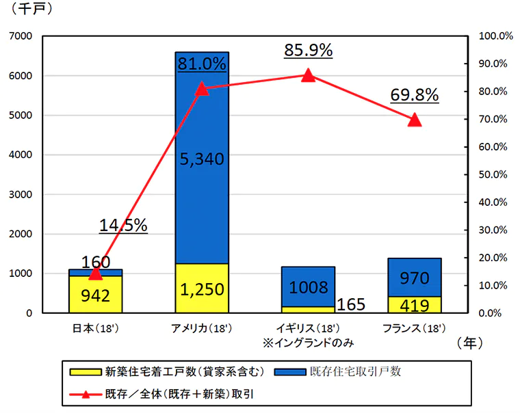 しかし海外では、中古住宅の流通が一般的な国も多く、住宅を「新築か中古か」で選ぶことは特別なことではありません。
