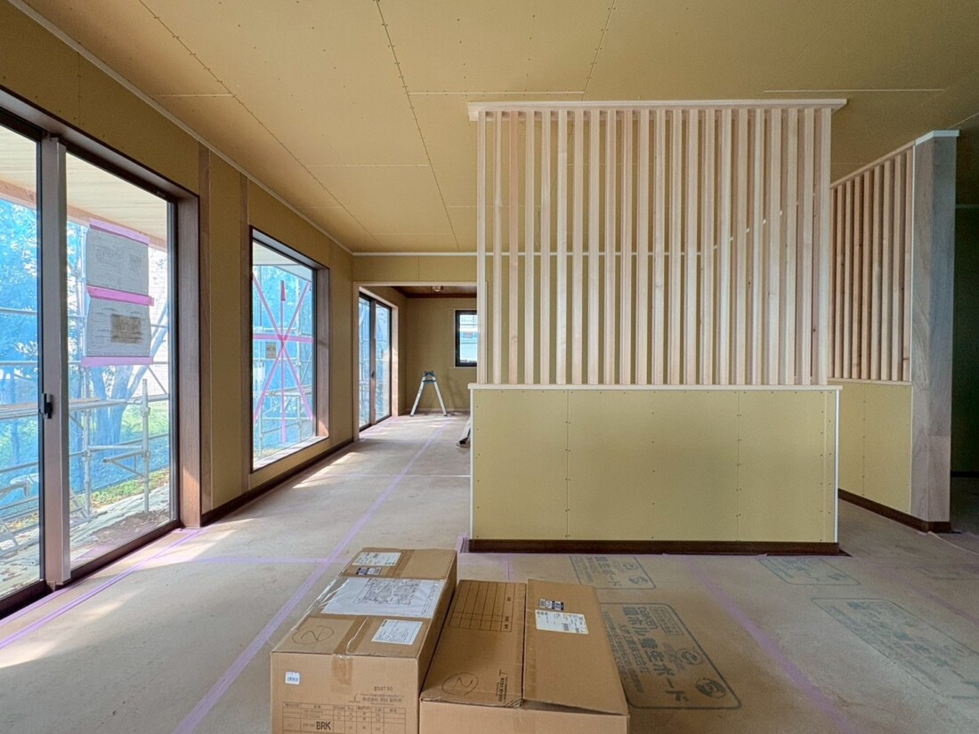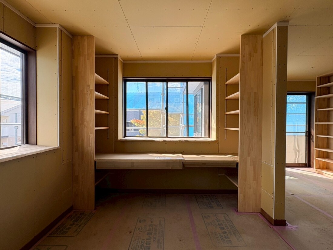 次の工程は、内装仕上げや設備工事です。木工事で整った骨組みとこだわりの造作の上に、暮らしの表情が少しずつ加わっていきます。