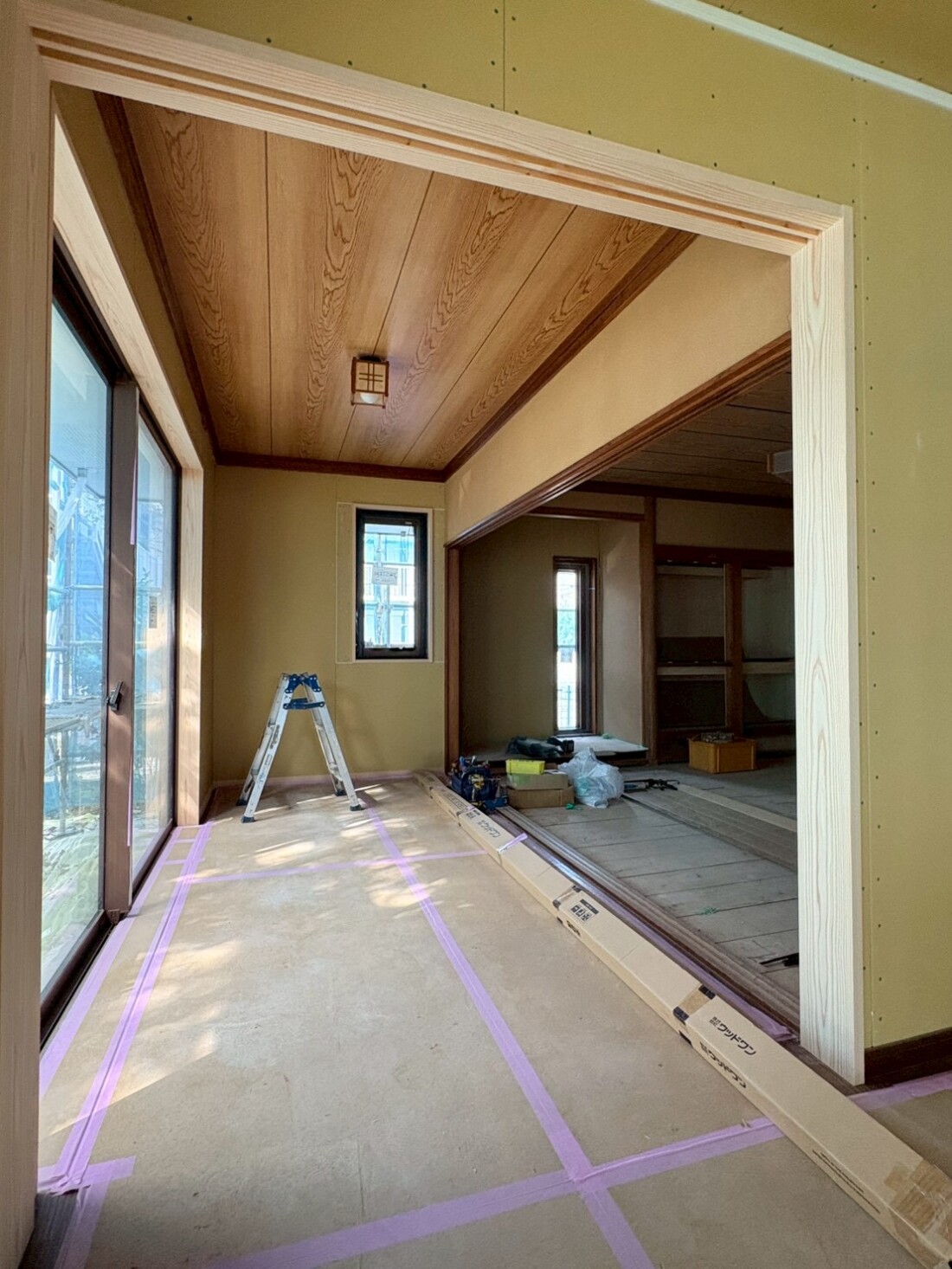 “外につながる、延びやかな家” のリノベーション現場では、ついに 木工事が完了 しました。