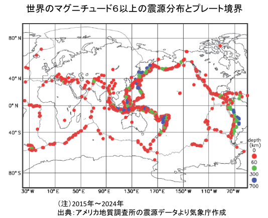 具体的に見てみると、2011年〜2024年に世界で発生したマグニチュード6以上の地震のうち、約20%が日本で発生しています。