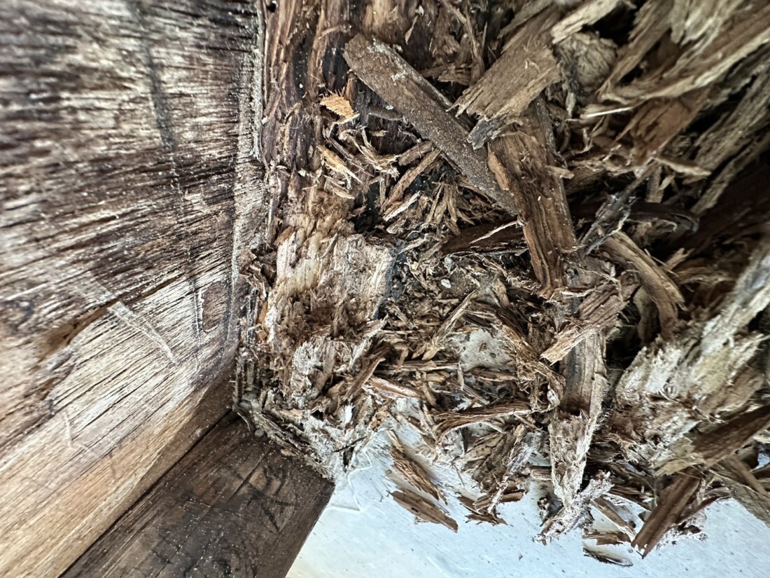 腐朽菌によって分解された木材を食べています。どういうことかというと、まず、湿気や雨漏れによって、木材の含水率が20%以上になると、腐朽菌が発生します。腐朽菌は、木材の含水率が高く、湿度が適度に保たれていて、酸素が供給されている条件の場合、発生しやすいです。