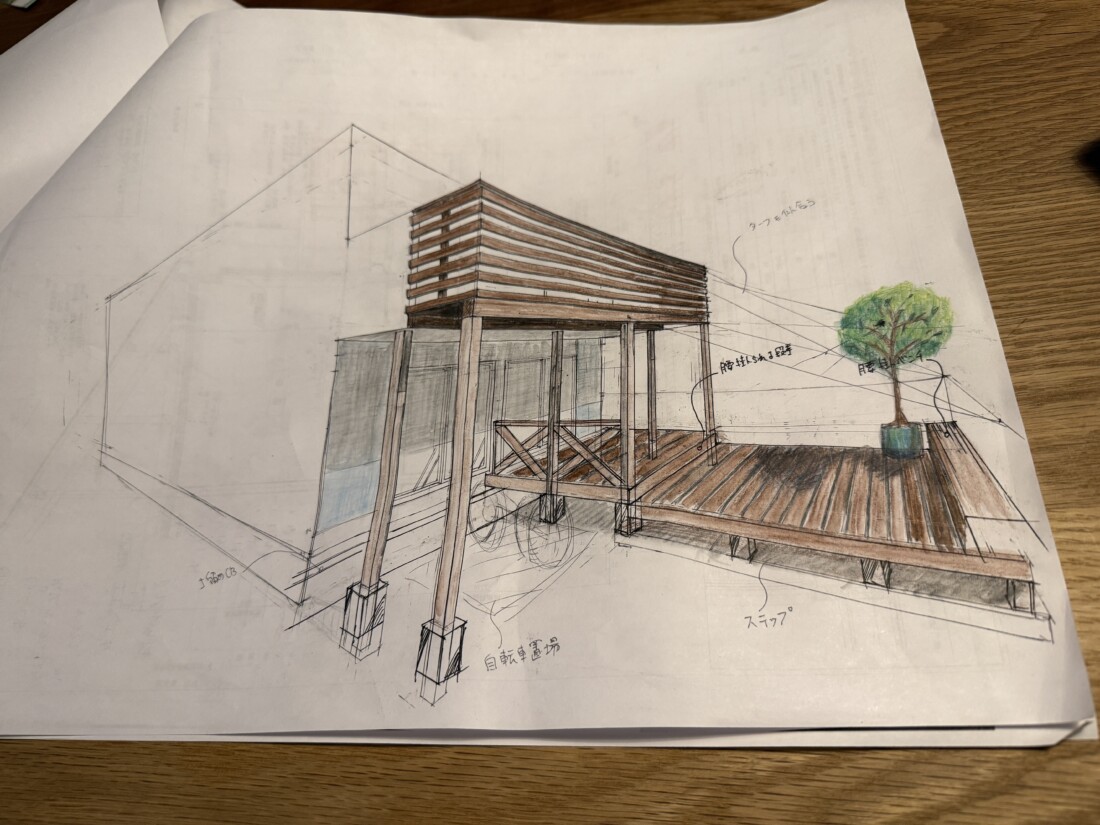 ベランダがうまく活用できていない、家の前が交通量が多く庭で寛げる環境ではないため、休日にBBQなど家族団らんの場にしたいといった想いをお聞きしました。