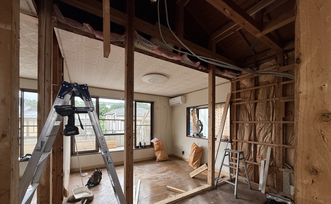 2階も1階同様、大胆に間取りを変更します。それに伴い、既存の柱を一部撤去し、必要な箇所を他の部分で補強するという工事を実施しました。