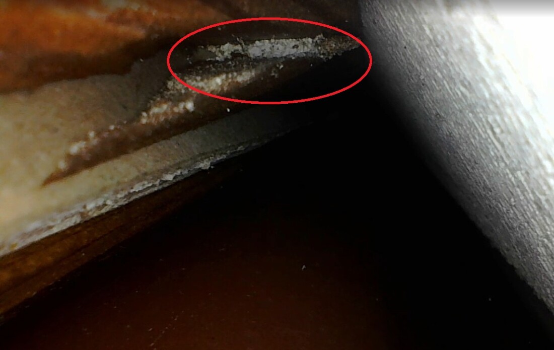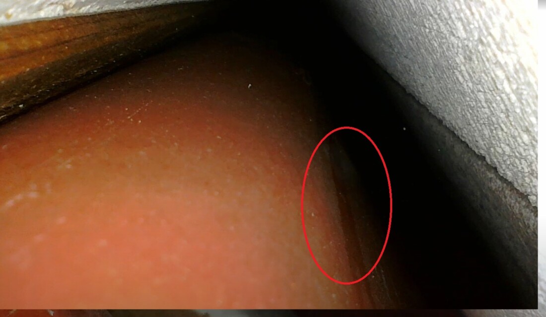 いくつかの亀裂を発見したため、さらに詳しく調べるため、室内の天井点検口からファイバースコープを挿入。