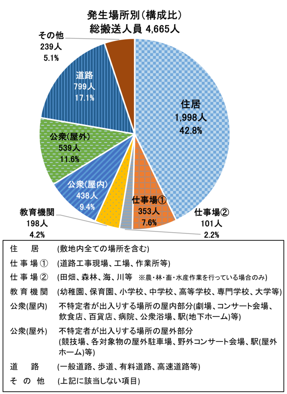 そのうち特に多いのが自宅内での発症です。高齢者や子どもは暑さを感じにくく、室内でも深刻なリスクがあることは見過ごせません(※消防庁 熱中症関連情報)。