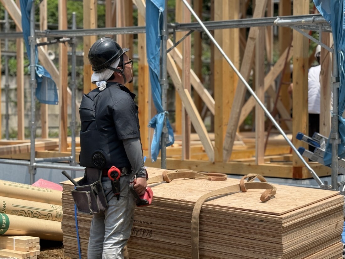図面の中にあった住まいが、職人の手によって空間として立ち上がっていく瞬間。それは、いつ見ても心が震える光景です。