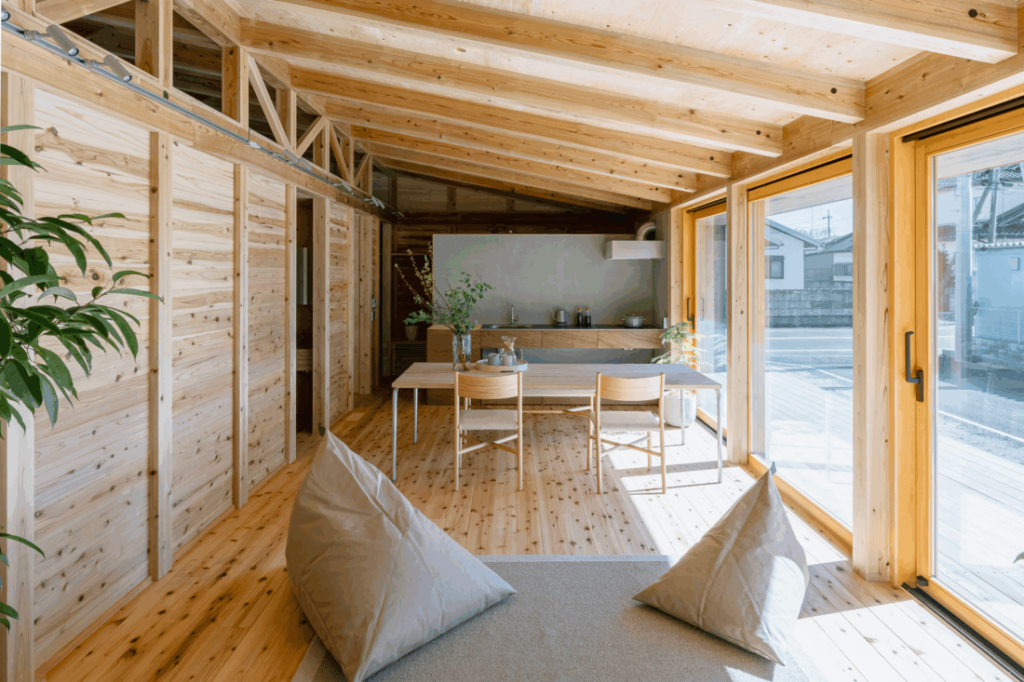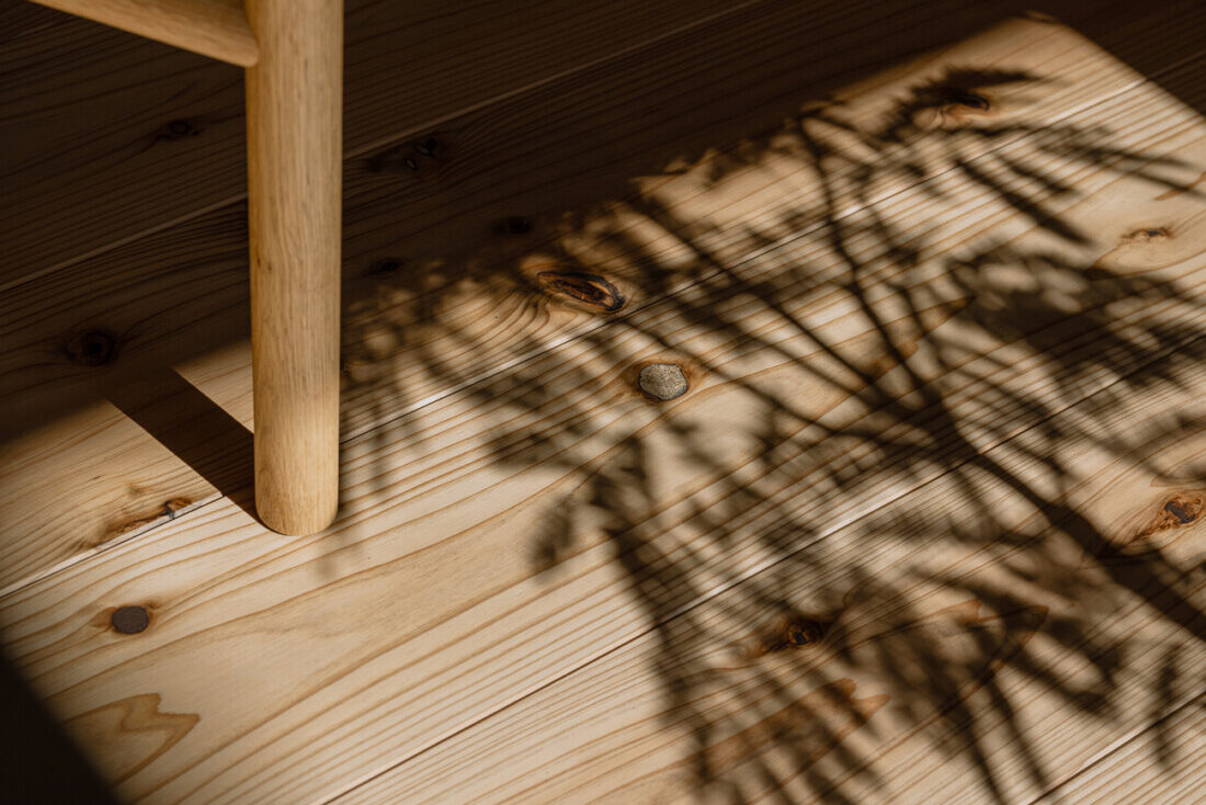 30mmもの厚みを持つ杉板に囲まれた空間は、都市の喧騒を遮断し、住む人の五感を研ぎ澄ませます。