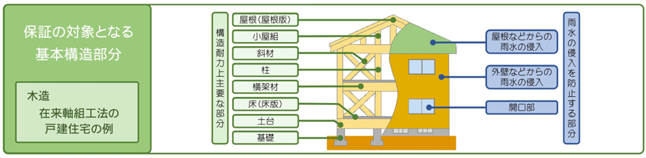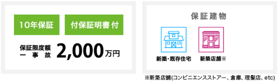 法律によって加入が義務付けられている、構造躯体と防水に関する保険です。万が一住宅会社と訴訟になった場合も住宅紛争処理支援センターに依頼ができます。